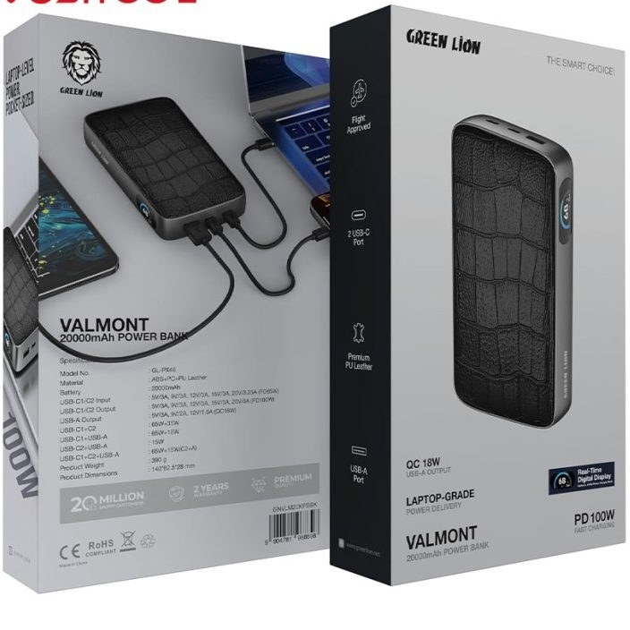 پاوربانک 100 وات 20000 گرین لاین Green Lion Valmont Power Bank GNVLM20KPBBK