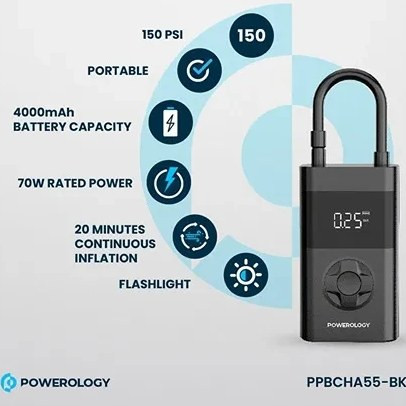 یکی از ویژگیهای بسیار خوب پمپ باد خودرو Powerology PPBCHA55 این است که این پمپ باد را میتوانید برای باد کردن انواع وسایل مختلف نظیر لاستیک خودرو، لاستیک موتور سیکلت، لاستیک دوچرخه، توپ و تیوپهای بادی استفاده کنید. همراه این پمپ باد چند سری مختلف به خریدار عرضه میشود که همین سریها شما را قادر میسازد تا وسایل مختلفی را شارژ کنید.