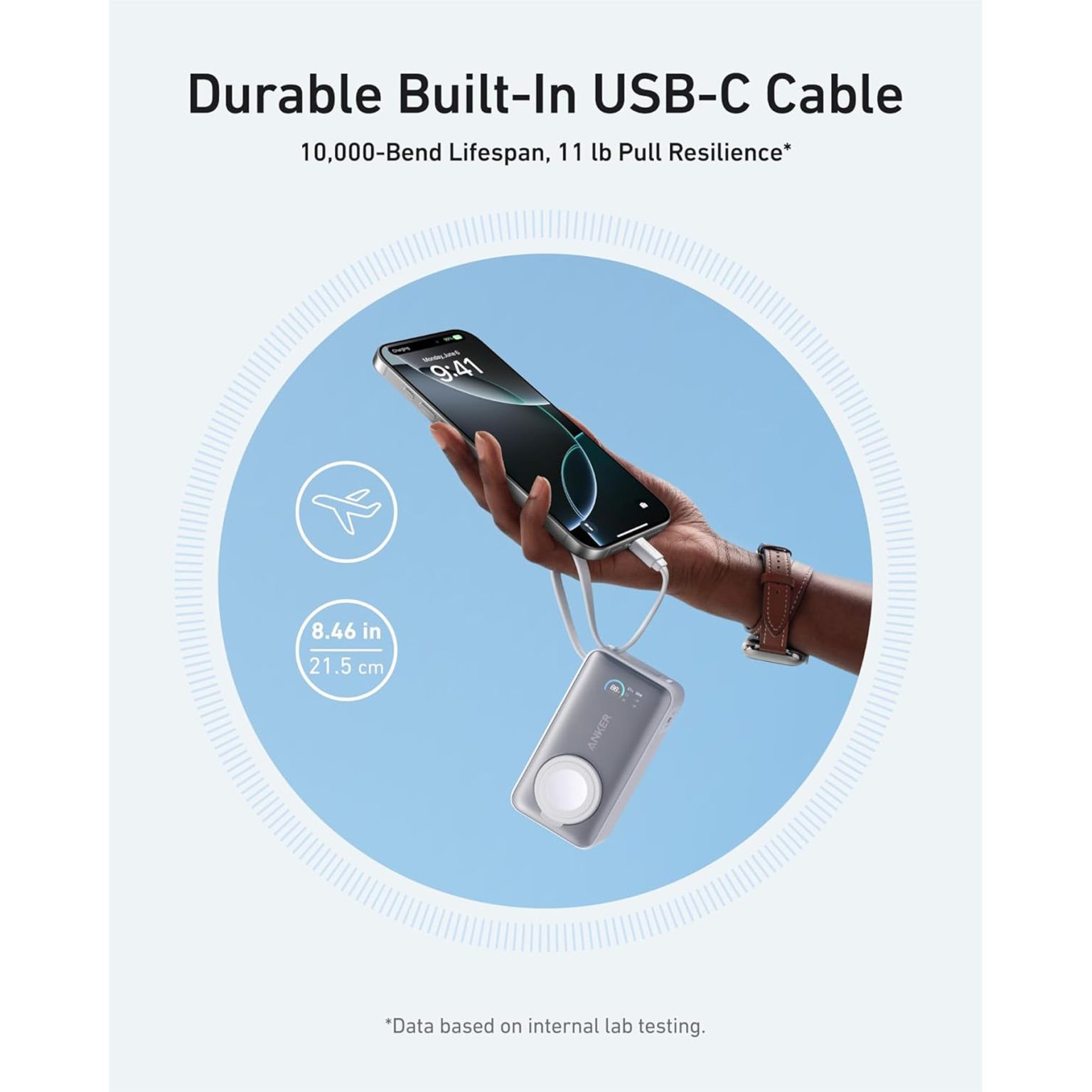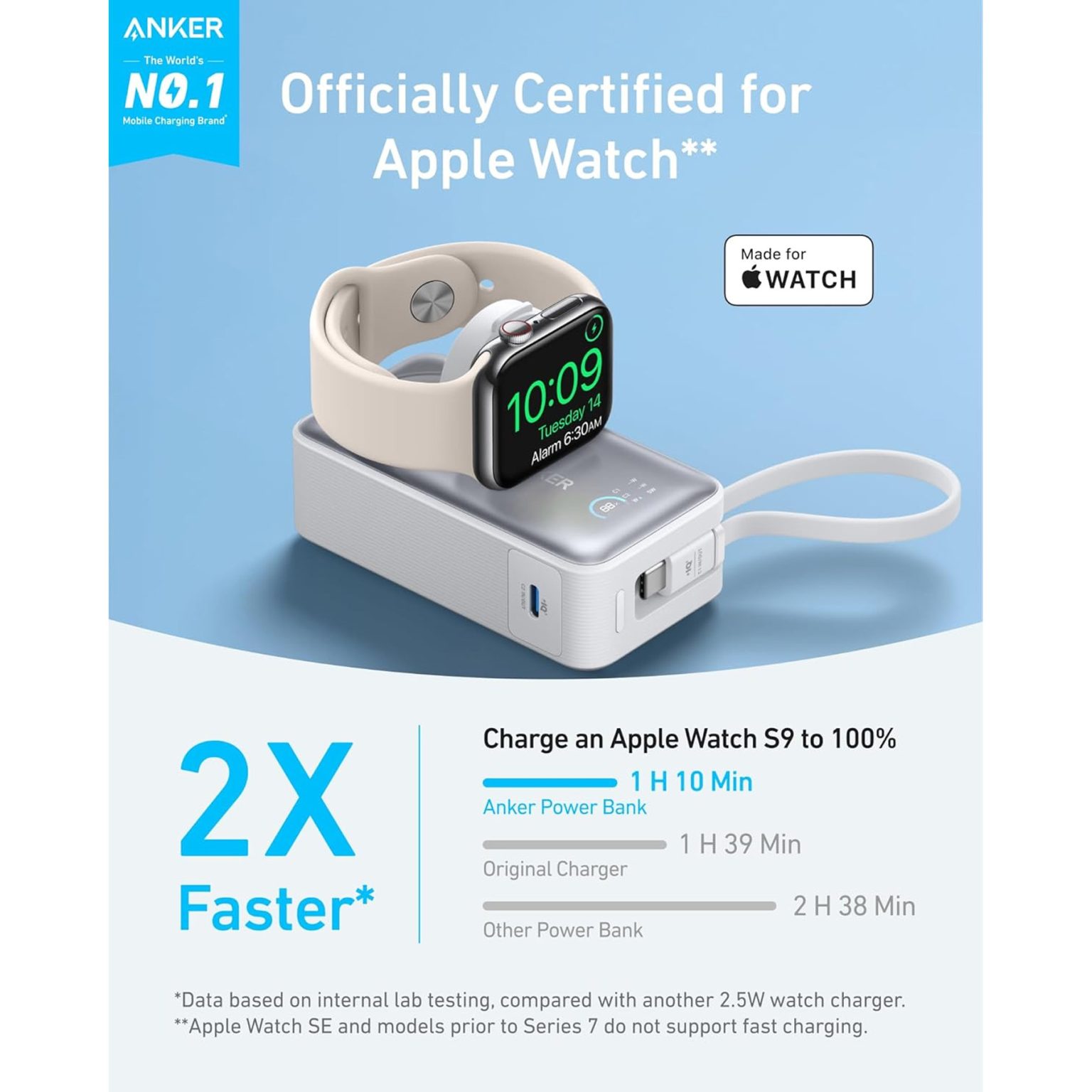 پاوربانک انکر مدل A1657 ظرفیت ۱۰ هزار میلی آمپر با قابلیت شارژ بی سیم اپل واچ