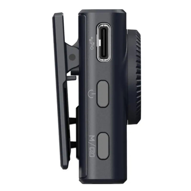 یک کلید روی میکروفون وایرلس Lark M2 تعبیه شده است. وظیفه اصلی آن فعال و غیرفعال کردن قابلیت نویزگیر میباشد. اما با دوبار فشار دادن این کلید، ضبط شما شروع یا متوقف میشود و حتی عکس میگیرد. درنتیجه در خیلی مواقع نیاز به یک نفر برای فیلمبرداری از شما نخواهید داشت و کافیست موبایل خود را بر روی پایه یا جایگاهی مناسب قرار دهید و با دکمه روی فرستنده ضبط خود را کنترل کنید. این ویژگی یک راه ساده برای ثبت لحظات مهم شما به صورت لحظهای فراهم میکند. لازم به ذکر است که از این دکمه جهت جفتسازی میکروفونهای مگنتی هالی لند نیز استفاده میشود.