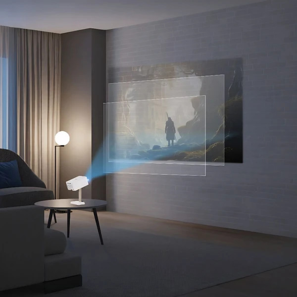 این پروژکتور از اتصال بیسیم بلوتوث و وایفای پشتیبانی میکند و همچنین دارای پورتهای USB، HDMI و کارت حافظه است تا بتوانید انواع دستگاهها و فایلها را به راحتی متصل کنید. طراحی سبک و رنگ سفید، حمل و جابجایی آن را آسان میکند و برای استفاده در سفر یا جلسات کاری ایدهآل است.