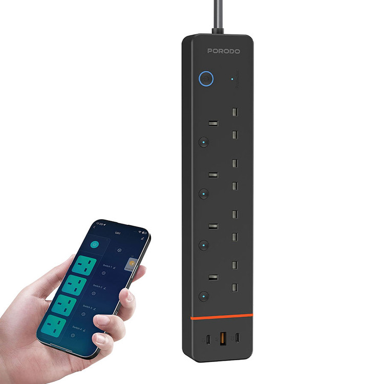 چندراهی برق هوشمند وایفای دار پرودو Porodo Chargelink Smart Power Strip 4AC & USB-C Ports PDPSUA1