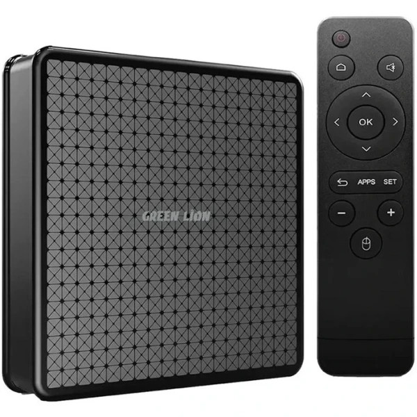 این اندروید باکس از شرکت Green Lion است که هدفش ارتقای تجربه سرگرمی خانگی با کیفیت ۴K است. سیستم عامل این دستگاه Android 10 دارد که امکان نصب اپلیکیشنهای مختلف (مانند استریم، بازی، مدیا پلیر) را میدهد. پردازنده آن Quad-Core Cortex-A53 است و پردازش گرافیکی را Mali-G31 برعهده دارد، که ترکیب مناسبی برای پخش ویدیو و استفاده سبکتر ایجاد میکند. حافظه این باکس ۲ گیگابایت رم و ۱۶ گیگابایت حافظه داخلی است. همچنین اسپیس ذخیرهسازی را میتوان با کارت TF تا ۱۲۸ گیگابایت گسترش داد. از نظر اتصال، دو باند وایفای (۲.۴ GHz و ۵.۸ GHz) دارد و بلوتوث نسخه ۵.۰ پشتیبانی میشود، که برای اتصالات بیسیم مثل کیبورد، هدفون یا اسپیکر مناسب است. خروجی تصویر: HDMI 2.0a با پشتیبانی از ۴K @ 60fps. در کنار پورت HDMI، خروجی AV هم دارد، بنابراین میتوان آن را به تلویزیونهای قدیمیتر نیز متصل کرد. دو پورت USB 2.0 برای اتصال فلش، هارد اکسترنال یا لوازم جانبی دیگر تعبیه شده است. پاور دستگاه: برق DC با ورودی 5V / 2A. کنترل از راه دور: از نوع Infrared (IR)، یعنی باید خط دید بین کنترل و باکس برقرار باشد.همچنین قابلیت اتصال تلفن هوشمند بدون کابل را دارد.