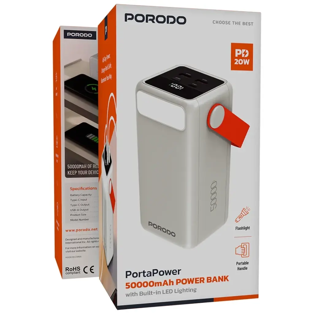 پاوربانک 50 هزار پرودو PDPBXRT50WH انتخابی ایدهآل برای افرادی است که به منبع انرژی مطمئن و پرقدرت نیاز دارند. ظرفیت بالای این پاوربانک باعث میشود بتوانید گوشی هوشمند خود را چندین بار بدون نیاز به برق شهری شارژ کنید. این ویژگی برای مسافرت، کمپینگ، کوهنوردی و حتی استفاده روزمره بسیار کاربردی است.